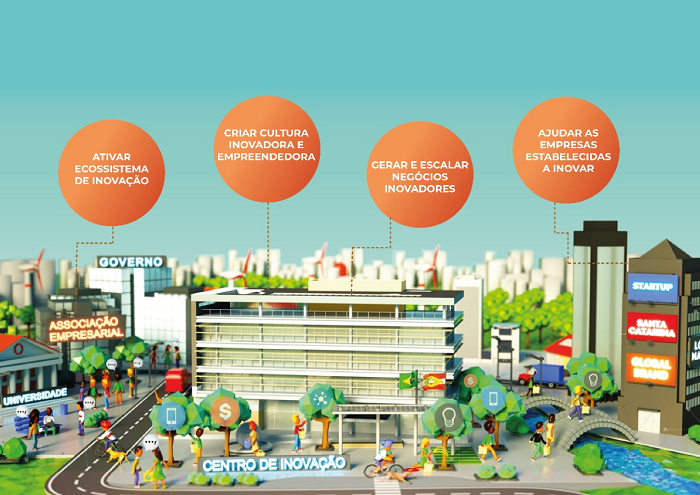 Os Centros de Inovação atuam para unir os diversos atores locais do seu ecossistema e, ainda, conectar o ecossistema local aos demais ecossistemas do estado por meio da Rede de Centros de Inovação de Santa Catarina. Além disso, trabalham para conectar o ecossistema local a ecossistemas estratégicos ao redor do mundo.