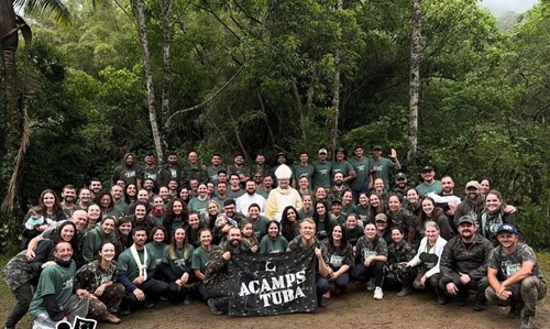 Foto Oficial do 29 Acampstuba da Diocese de Tubarão. Foram quatro dias de doação da equipe organizadora para que os campistas tivessem uma experiência única de encontro com Deus. Na foto com o bispo Dom Adilson Pedro Busin