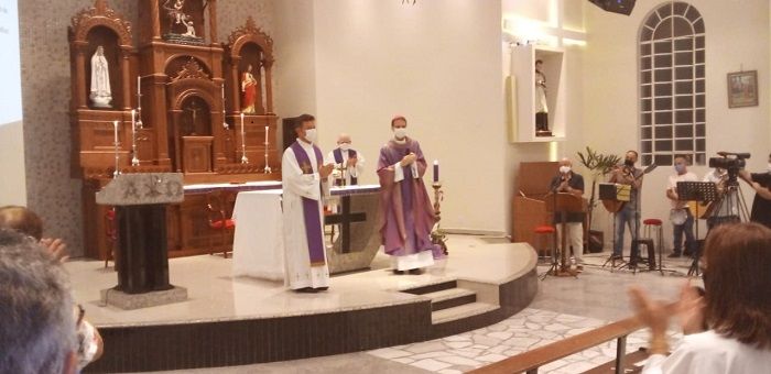 Na celebração também ocorreu a posse do primeiro pároco, Pe. Realdo A. Sartor. A missa contou com somente 25 por cento da capacidade em virtude das medidas (decreto estadual) de combate à pandemia da Covid-19.