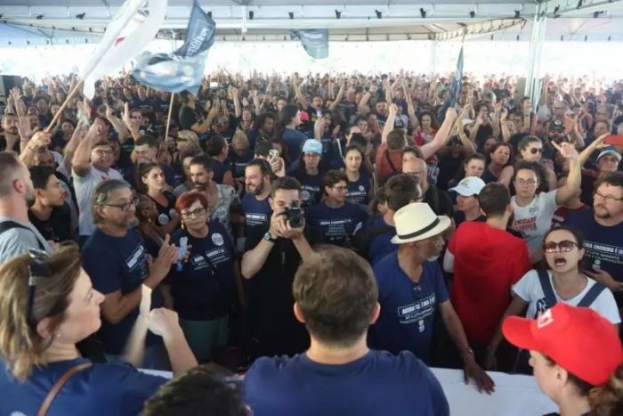 A primeira proposta oficial do governo foi apresentada ontem, após pressão dos deputados estaduais, que passaram o dia em reuniões buscando uma solução para o impasse. O Estado propôs um cronograma para a publicação de edital de concurso, um reajuste para R$ 25 por dia no vale alimentação a partir de setembro de 2024, e a retomada, a partir de 2025, do pagamento da hora-atividade, que foi cortada nesta gestão.