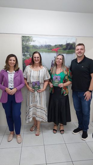 Na imagem: a coordenadora de jornalismo do grupo Magda Martins, a secretária de Educação de Tubarão Anete Volpato Wilbert, a gerente administrativo Adriana Mariano Rosa e o gerente comercial do grupo Erick Uliano.