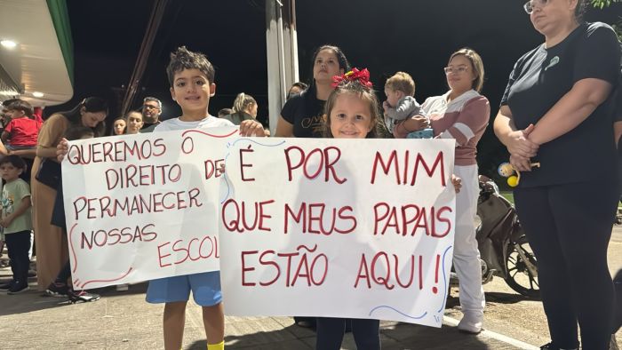 Pais e crianças estiveram ontem à noite em um protesto durante um evento político realizado em Tubarão, que contou com a presença do governador Jorginho Mello e do prefeito Estêner Soratto, ambos do PL. A manifestação foi organizada por responsáveis por alunos da rede de ensino, que demonstraram indignação diante da possível realocação de crianças matriculadas em Centros de Educação Infantil e escolas credenciadas pela prefeitura.