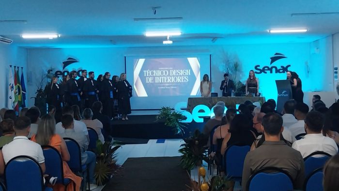 Neste sábado (31), o Senac Tubarão celebrou a colação de grau da primeira turma do curso Técnico em Design de Interiores oferecido pelo Programa Senac de Gratuidade (PSG). O curso, totalmente gratuito, prepara profissionais para atuar em diferentes áreas do design de interiores, desde marcenarias até escritórios especializados.