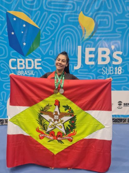 Hoje (21), a competição de Karatê nos Jogos Escolares Brasileiros (JEBs), realizados em Aracaju/SE, chegou ao fim com uma celebração especial para a equipe da Associação Impacto/FME de Tubarão. A atleta da equipe, Ana Luiza, obteve um excelente desempenho, conquistando duas medalhas: uma de Bronze na modalidade de Kata e uma de Prata na modalidade de Kumite -60kg.