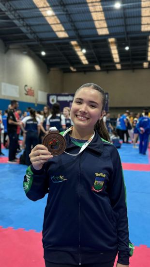 A atleta Letícia Cardoso, de Braço do Norte, garantiu o 3° lugar na categoria Kata Individual Feminino durante os Jogos Abertos de Santa Catarina (JASC). O resultado reforça sua excelência técnica e domínio na modalidade, consolidando-se como uma das principais atletas do estado.