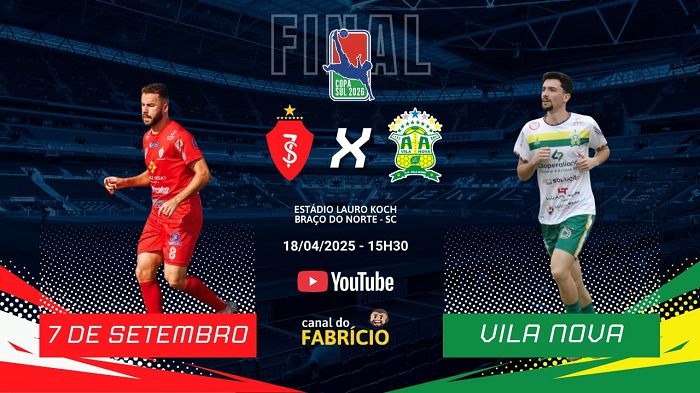 O futebol amador da região vive seu momento de maior expectativa com o início da grande decisão da Copa Sul dos Campeões. Neste sábado (18), em Braço do Norte, o 7 de Setembro recebe o Vila Nova para os primeiros 90 minutos da final. O confronto coloca frente a frente dois treinadores de renome: Fernando Lessa, ex-atleta do Grêmio com licença CBF, comanda o time da casa, enquanto o experiente Gonzaga Milioli, com passagens pelo Criciúma e seleção do Catar, lidera a equipe visitante em busca de mais um troféu para sua galeria vitoriosa.