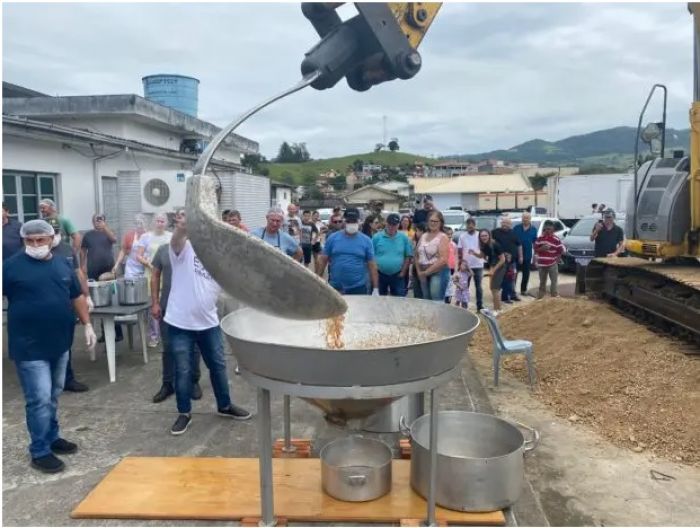 O panelão de ferro fundido, usado para preparar o caldo, veio de Joinville e ficou instalado em frente ao salão paroquial, no Centro da cidade. Cerca de 50 voluntários prepararam quase dois mil litros do alimento, que foi servido ao meio-dia.