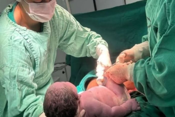 “Sabíamos que seria um bebê grande, mas não imaginávamos que fosse tanto”, relatou a Dra. Valdênia. Outro detalhe que impressionou os profissionais foi o peso da placenta, que chegou a 1,220 kg. “Apenas a placenta pesava isso”, destacou a obstetra.