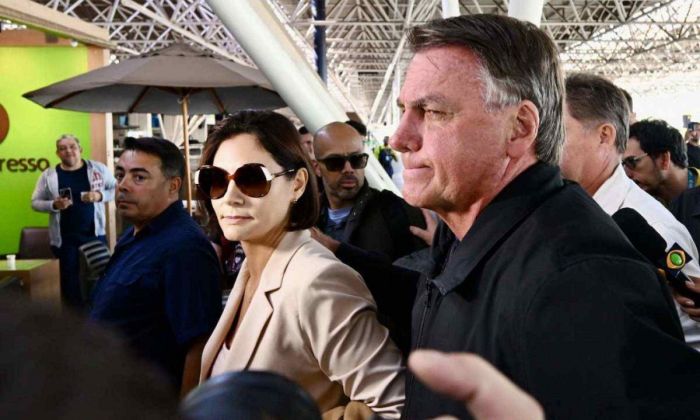 O ex-presidente Jair Bolsonaro (PL) acompanhou a esposa Michelle Bolsonaro na manhã deste sábado (18), no Aeroporto Internacional de Brasília. Ela viajou aos Estados Unidos para participar da posse de Donald Trump.