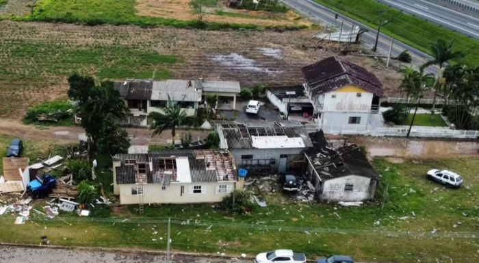 Após as chuvas intensas e ventos de até 100 km/h que atingiram Sombrio, no Sul de Santa Catarina, na noite de quarta-feira (27) e madrugada de quinta (28), a cidade decretou situação de emergência. A tempestade severa causou destelhamentos, quedas de árvores e danos estruturais, afetando inclusive o quartel do Corpo de Bombeiros.