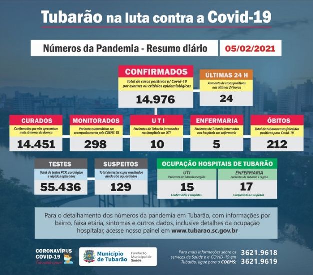 Duas pessoas perderam a vida para a Covid-19 nas últimas 24 horas, em Tubarão. Agora, a cidade contabiliza 212 mortes desde o início da pandemia.