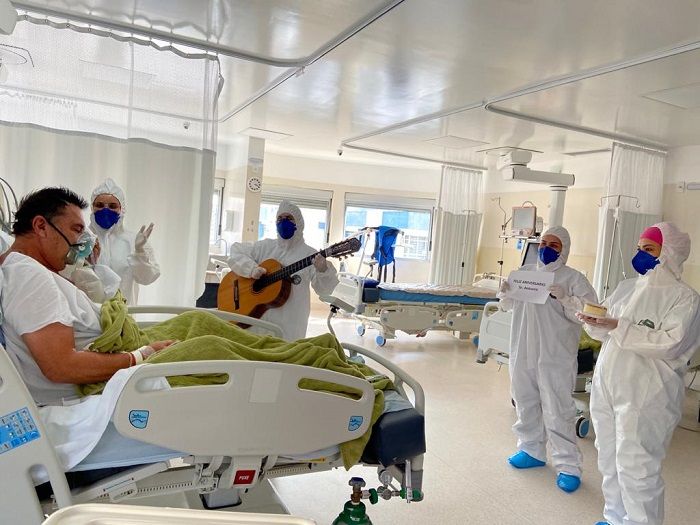 “Nossa intenção é sempre proporcionar momentos de felicidade, mesmo que as pessoas estejam passando por períodos difíceis. A Covid acaba os afastando de quem mais amam, por isso procuramos fazer com que se sintam acolhidos. Para o seu Antônio era uma data especial, afinal, são 70 anos de vida. Então trouxemos música, um bolinho, fizemos uma festa na medida do possível. Cantamos os parabéns e as músicas que ele pedia. Foi um momento em que ficou muito emocionado e agradeceu, pois, segundo ele, nos tornamos parte de sua família também e isso é muito gratificante”, contou a enfermeira da UTI Covid, Bruna Esmeraldino Pavan.