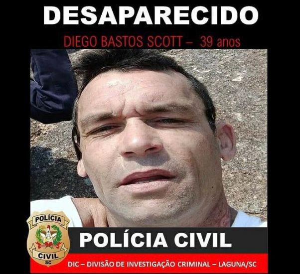 Continua desaparecido desde o dia 15 deste mês, Diego Bastos Scott, 39 anos, morador do Bairro Progresso em Laguna. Na ocasião, ele havia se envolvido em uma discussão familiar e a Polícia Militar foi chamada para apartar a situação. A versão oficial é que o rapaz não estava no local, mas uma câmera contrapõe o relato, pois gravou o momento em que os policiais o colocam na viatura. O caso é investigado pela Polícia Civil e pela própria PM, onde foi aberta sindicância.