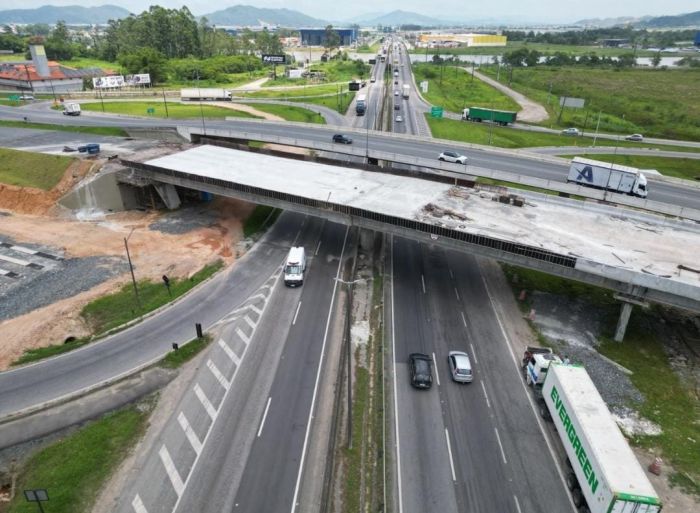 Durante o período de interdição, as equipes do DNIT executarão serviços de concretagem no novo viaduto do km 7 da BR-470/SC.