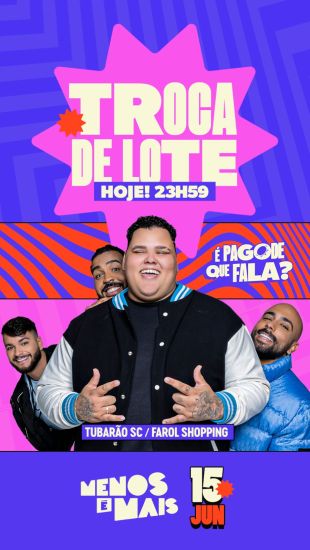 O grupo de pagode Menos é Mais, um dos maiores sucessos do cenário musical nacional, desembarca em Tubarão no próximo dia 15 de junho, prometendo uma noite inesquecível para os amantes do gênero. Com ingressos esgotando rapidamente, o público deve ficar atento: a virada de lote acontece hoje, às 23h59.