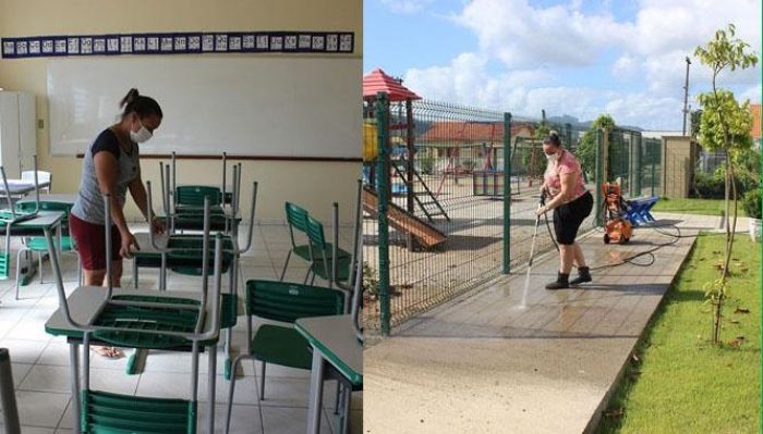 A partir da Lei Complementar Nº 18.032, de 08/12/2020, a educação passou a ser considerada uma atividade essencial no estado de Santa Catarina. Desta forma, uma Portaria conjunta da Secretaria Estadual da Saúde e da Secretaria Estadual da Educação definiu os protocolos de segurança sanitária para o retorno às aulas presenciais, reforçando/endossando o que estava estabelecido nos Planos de contingência (PLANCON), seja na esfera municipal ou estadual.