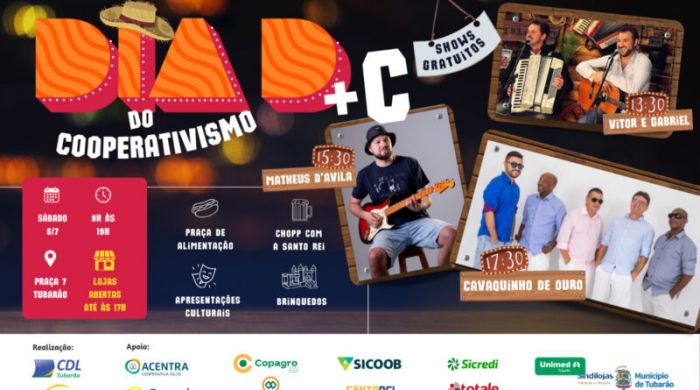 O Dia Internacional das Cooperativas, comemorado mundialmente há mais de um século e oficialmente proclamado pela Assembleia Geral das Nações Unidas em 1995, ocorre anualmente no primeiro sábado de julho. As cooperativas de Tubarão também participarão da programação.