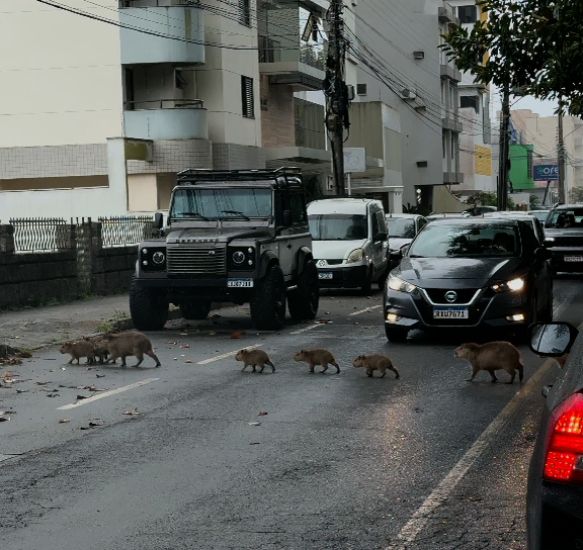 O registro mostra o grupo formado por capivaras adultas e filhotes caminhando tranquilamente, em fila. A presença das capivaras na região não é novidade. Elas costumam ser vistas com frequência às margens do rio, principalmente nas primeiras horas da manhã e ao entardecer. No entanto, o flagrante da travessia em plena via urbana, em meio ao movimento de carros, tornou o momento ainda mais especial.