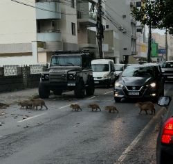 Um vídeo gravado pelo jornalista Luiz Henrique Fogaça nesta terça-feira (28) está chamando a atenção nas redes sociais. Nas imagens, uma família de capivaras é vista atravessando a rua na Avenida José Acácio Moreira, no bairro Humaitá, em Tubarão, enquanto os carros param para deixar os animais passarem com segurança.