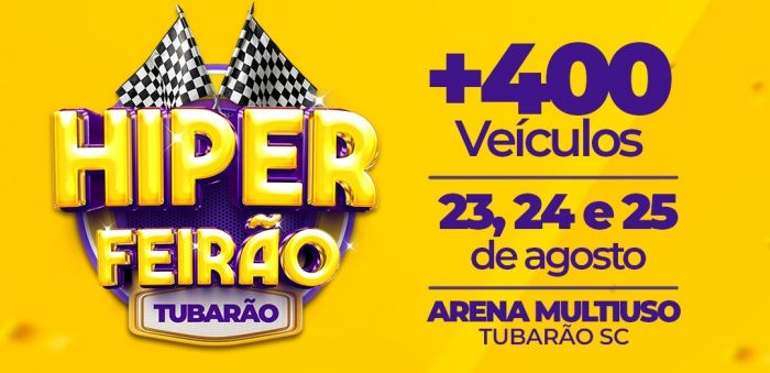 O site Hipermotors anunciou o lançamento de seu Feirão de Veículos, que ocorrerá nos dias 23, 24 e 25 de agosto na Arena Multiuso em Tubarão. O evento contará com mais de 400 opções de veículos novos e seminovos, incluindo carros, motos e motos elétricas.