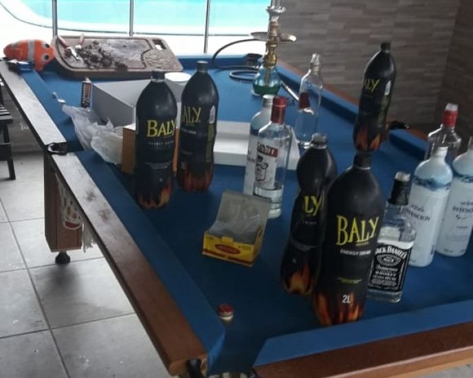A festa interrompida em Garopaba do Sul era regada a bebidas alcoólicas e substâncias entorpecentes, sendo necessário reforço policial para o seu atendimento, em razão do comportamento não colaborativo dos autores.