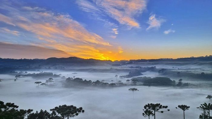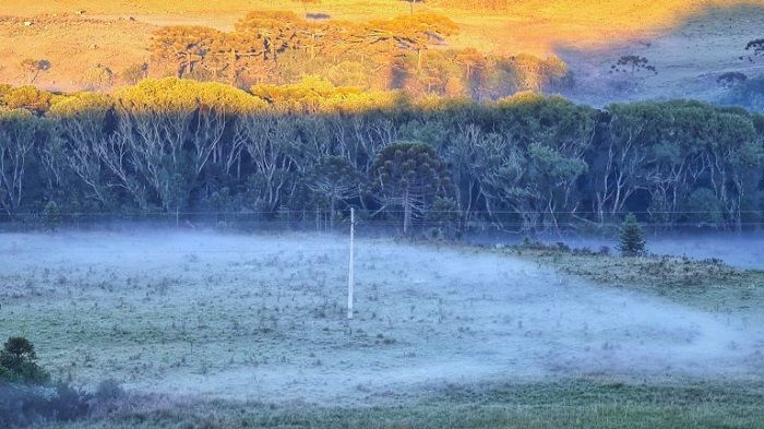 O Vale do Caminhos da Neve, situado a cerca de três quilômetros do Centro, em São Joaquim, teve um amanhecer bem gelado nesta quinta (13). Os termômetros atingiram a mínima de 1.8ºC na estação local.