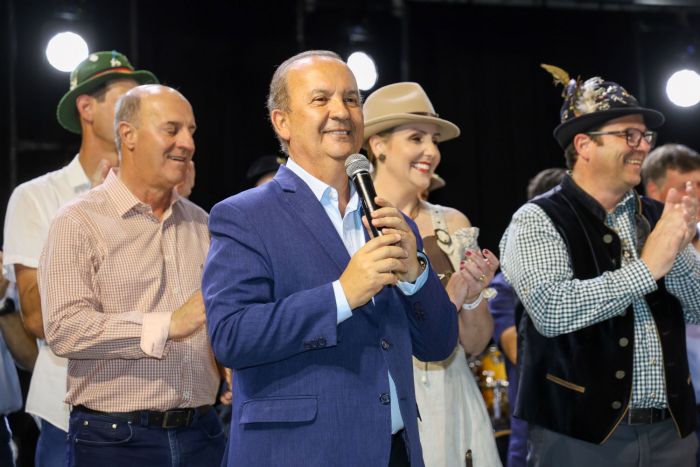 O governador Jorginho Mello participou, nesta sexta-feira, da 29ª edição da Festa do Produto Colonial de São Martinho, que celebra a cultura e a produção agrícola local. A festa, realizada anualmente, reúne milhares de visitantes que apreciam a gastronomia, o artesanato e a tradição alemã da região.