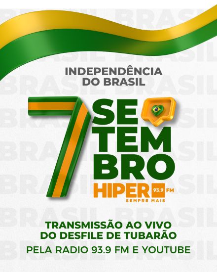 O Grupo Hiper de Comunicação fará a transmissão ao vivo do Desfile Cívico de Tubarão neste domingo, a partir das 7h, em comemoração ao 7 de Setembro, Dia da Independência do Brasil.
