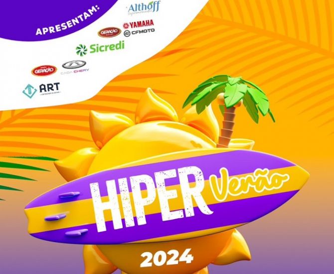 Acontece neste domingo (14) a segunda etapa do Hiper Verão 2024, projeto do Grupo Hiper de Comunicação que leva aulas de esporte, zumba, brinquedo inflável para as crianças e muita música.