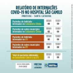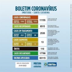 A Secretaria Municipal de Saúde (Semusa) de Imbituba, por meio da Vigilância Epidemiológica, confirmou, nesta sexta-feira (21), que a cidade chegou aos 2.530 casos ativos da Covid-19.