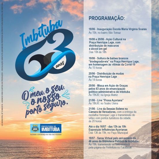 Nesta segunda-feira (21), o município de Imbituba completa 63 anos de emancipação político-administrativa. Para comemorar a data, alguns eventos foram programados (veja a programação completa abaixo).