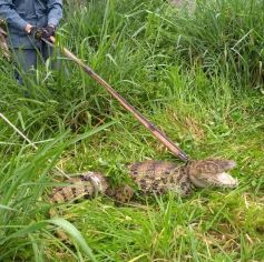 Era um jacaré adulto de aproximados 2 metros, o animal foi devidamente capturado pelos bombeiros em um terreno baldio. Na ocorrência, os bombeiros contaram com a ajuda do Professor Rodrigo Ávila Mendonça.