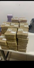 O dinheiro foi encontrado em uma apartamento na cidade, após a prisão de quatro indivíduos que estavam recolhendo dinheiro espalhados pelas ruas da cidade.