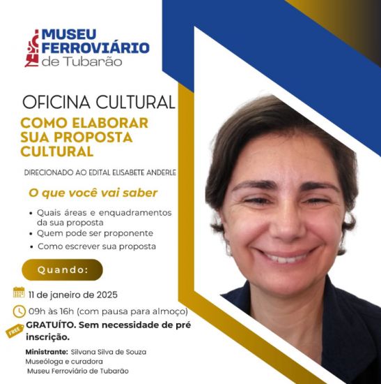 O Museu Ferroviário de Tubarão inicia 2025 com a realização da Oficina Cultural Relâmpago, destinada a artistas e agentes culturais interessados em submeter propostas ao Edital Elisabete Anderle de Estímulo à Cultura.