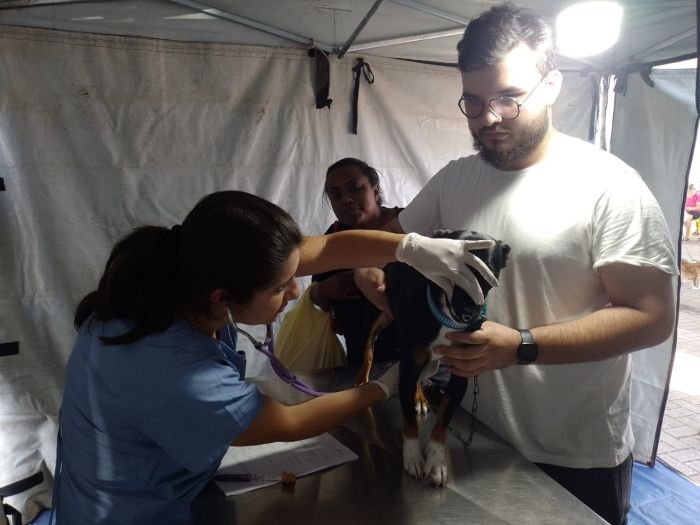 Durante o mutirão, também foi realizada a vacinação antirrábica em 22 cães, em parceria com o curso de medicina veterinária da Unisul. O evento ocorreu no estacionamento da Arena Multiuso, das 9h às 15h.