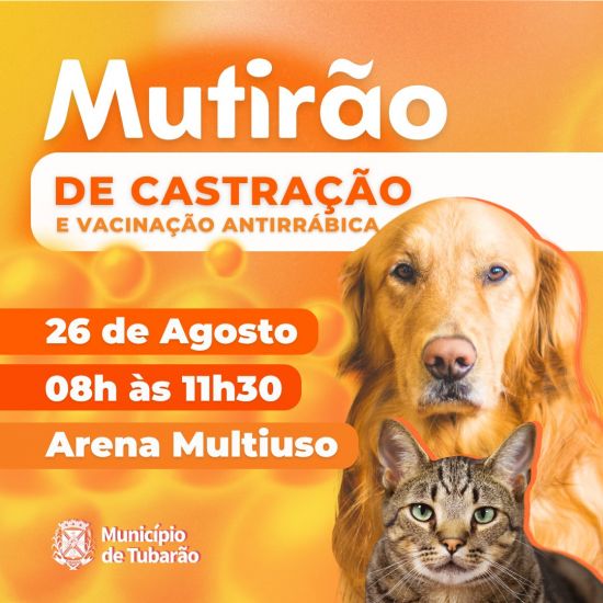 A Fundação Municipal de Meio Ambiente (Funat), em colaboração com a Unisul, realizará um mutirão de castração para cães e gatos nesta segunda-feira (26), com o intuito de controlar a população desses animais no município. O evento acontecerá na Arena Multiuso, das 8h às 11h30.