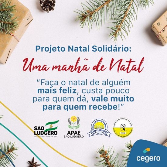 Com o objetivo de arrecadar alimentos, brinquedos e uniformes e proporcionar um momento especial às crianças carentes, bem como integrar a escola e a família cooperada, criando um clima de solidariedade, amor, carinho e aproximação, a Cooperativa de Eletricidade de São Ludgero (Cegero) em parceria com as escolas das redes Estadual e Municipal de Ensino e a Escola da Apae realizam a ação Natal Solidário. Por meio de um Drive Thru, as arrecadações acontecem amanhã, quarta-feira, dia 9, e no sábado, dia 12.