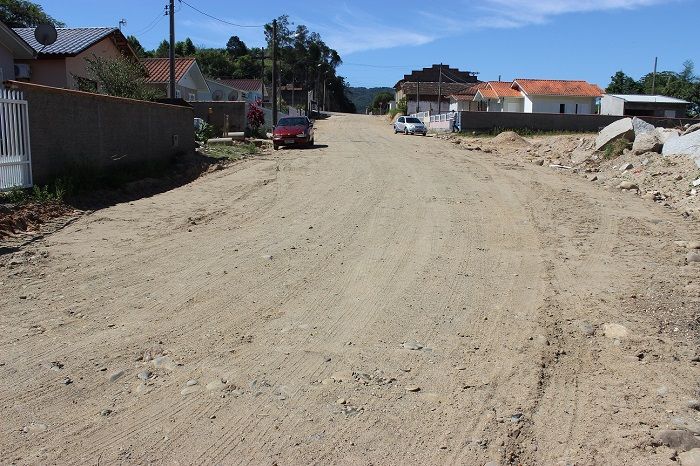 Um trecho da rua Hercílio Luz, no bairro Beira Rio, com a parte de nivelamento, sub-base e drenagens já realizadas será o último a ser pavimentado no perímetro urbano de São Ludgero em 2020.