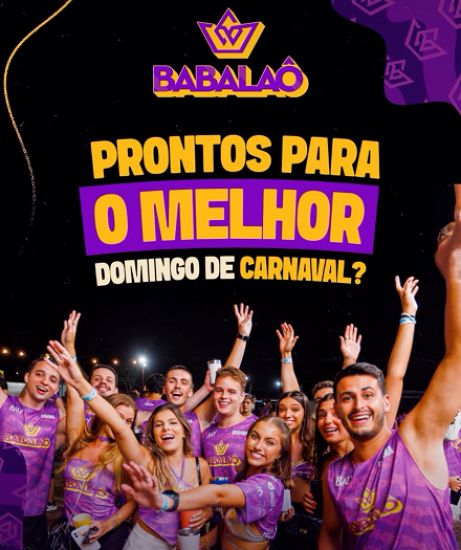 O melhor domingo de Carnaval já tem data, horário e local definidos: domingo, 15 de fevereiro, a partir das 16 horas, no Porto de Laguna. O Camarote Babalaô oferece uma experiência única, unindo as melhores atrações, bebidas premium e um público animado, garantindo momentos inesquecíveis para os foliões.