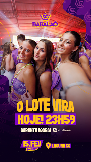 Quem ainda não garantiu seu ingresso tem uma oportunidade especial: hoje, às 23h59, ocorre a virada de lote. Adquirir o ingresso antes do prazo garante preços mais acessíveis e acesso a uma das maiores festas do Carnaval catarinense.