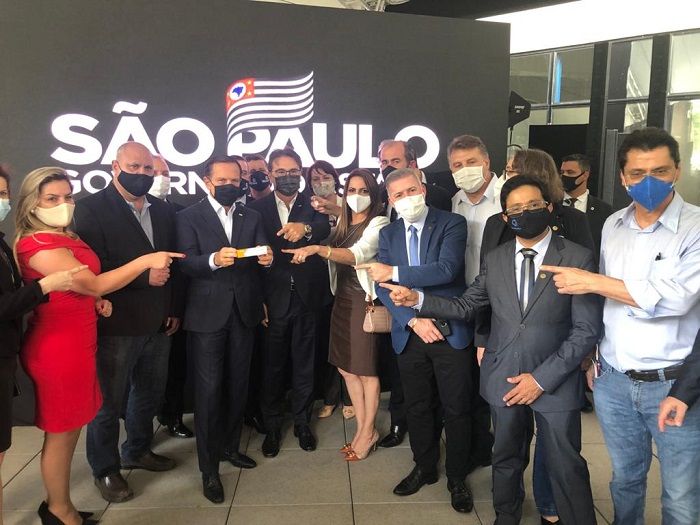 A vacina é produzida pelo instituto junto à farmacêutica Sinovac. Além dos representantes da entidade, a solenidade contou com a presença do governador paulista, João Dória.