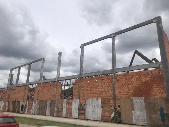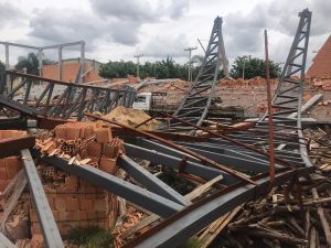 Na manhã desta quarta-feira (18), durante as obras de construção de um ginásio na praça da família, no bairro Nossa Senhora de Fátima em Braço do Norte, as estruturas metálicas (tesouras) da construção desabaram e deixaram alguns trabalhadores feridos.
