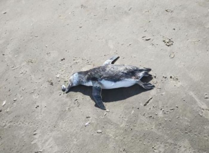 Um pinguim foi encontrado morto na manhã deste domingo (21) na praia do Mar Grosso, em Laguna. O animal estava na faixa de areia, nas proximidades dos Molhes da Barra.