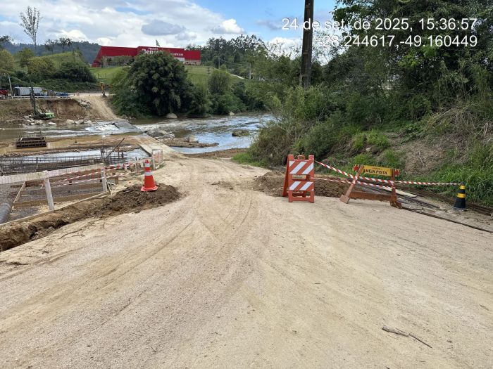 Foi interditada nesta quarta-feira (24) a Ponte da Represa, em Braço do Norte. A decisão da Prefeitura, por meio da Defesa Civil, é temporária e tem como objetivo garantir a segurança da população e preservar a estrutura até a conclusão das obras da nova ponte de concreto armado.