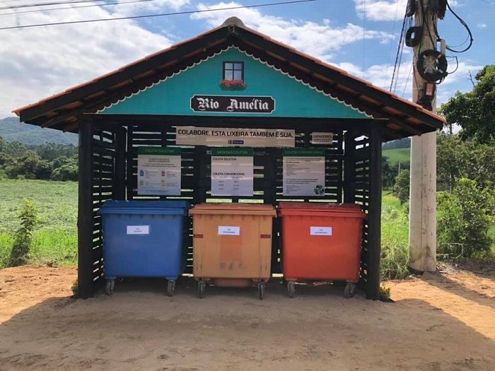 O local, no estilo colonial alemão, traz ainda avisos com dias e horários de coleta, explicações sobre a coleta seletiva e convencional, e placas de conscientização.
