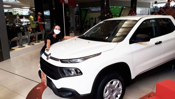 A sortuda que começa 2021 com um Fiat Toro 0km na garagem é de Capivari de Baixo. Natália da Rosa Ramos venceu a promoção de fim de ano do Farol Shopping, em Tubarão.