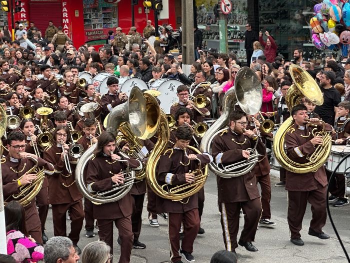 A programação começou cedo, às 7h30, com o hasteamento das bandeiras, e reuniu cerca de 10 mil pessoas ao longo do percurso. Ao todo, 47 entidades participaram, entre escolas, forças de segurança e instituições locais, que deram ritmo e cor ao evento.
