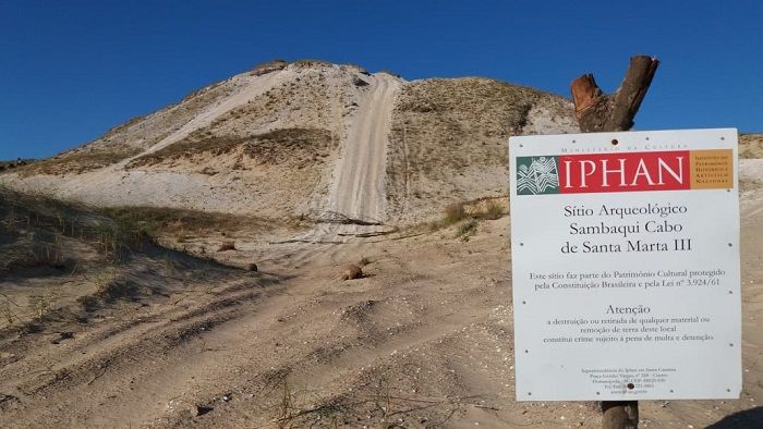 Os sambaquis próximos ao Farol de Santa Marta, em Laguna (SC), estão recebendo sinalização e cercamento. A ação foi definida pela superintendência do Instituto do Patrimônio Histórico e Artístico Nacional em Santa Catarina (Iphan-SC) como parte das medidas de preservação do Patrimônio Cultural arqueológico. O trabalho foi iniciado na primeira quinzena de janeiro e a previsão é que seja entregue até março deste ano.