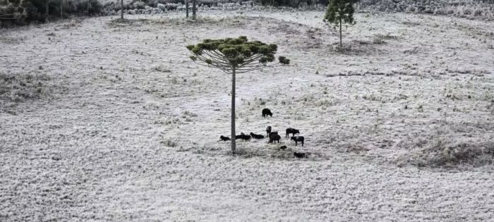 Em São Joaquim, também na Serra, a mínima chegou a -7,56ºC. No Vale do Caminhos da Neve, uma fina camada de gelo cobria a vegetação, formando uma paisagem típica de inverno rigoroso.