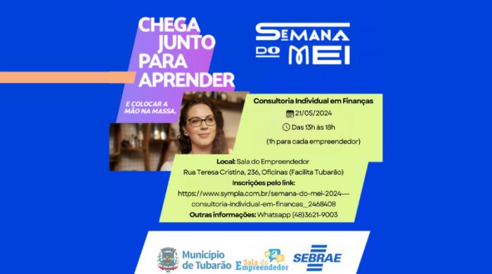 As consultorias serão realizadas na Sala do Empreendedor, Rua Teresa Cristina, 236, Oficinas, Tubarão-SC. Para mais informações, entre em contato via WhatsApp: (48) 3621-9003.